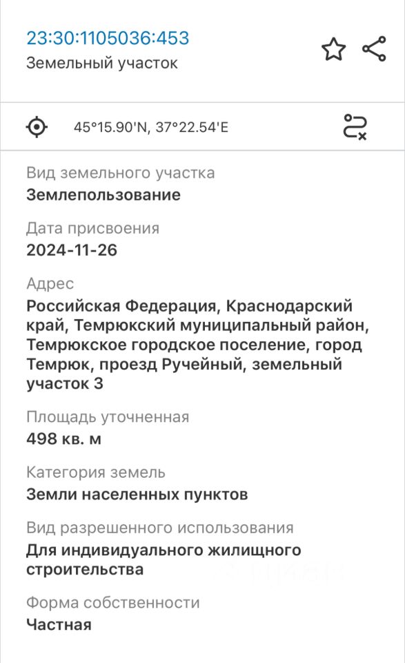 Кадастровый номер участка 23:30:1105036:*** указал продавец