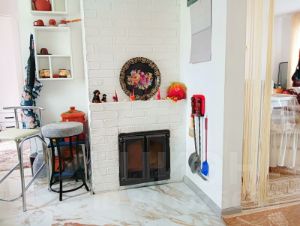 В доме есть просторный совмещённый санузел, куня, гостинная и спальня. В кухне стоит дровяной камин с огнеупорными стеклянными дверцами, который не только создаёт уют, но и обогревает равномерно весь дом. Тёплые полы обогреваются электрическим котлом.