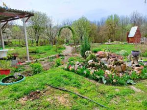 В саду настоящий райский уголок- плодовые деревья и декоративные кустарники. Грядки с плодородной почвой. Чистый, современный уличный туалет. В конце участка есть ландшафтное понижение с выходом в лес. Тихие соседи.