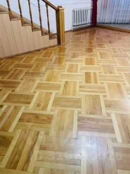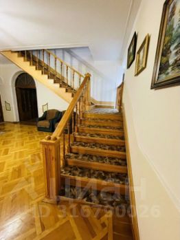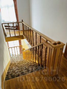 Шикарная лестница из массива ведущая на второй этаж, полы из красивого паркета.