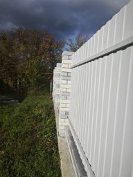 Стены: Многослойная конструкция — несущий шлакоблок с внешним утеплением и облицовкой кирпичом. Использован эффективный терморазрыв из пенополистирола, что исключает мостики холода и обеспечивает низкие затраты на отопление.