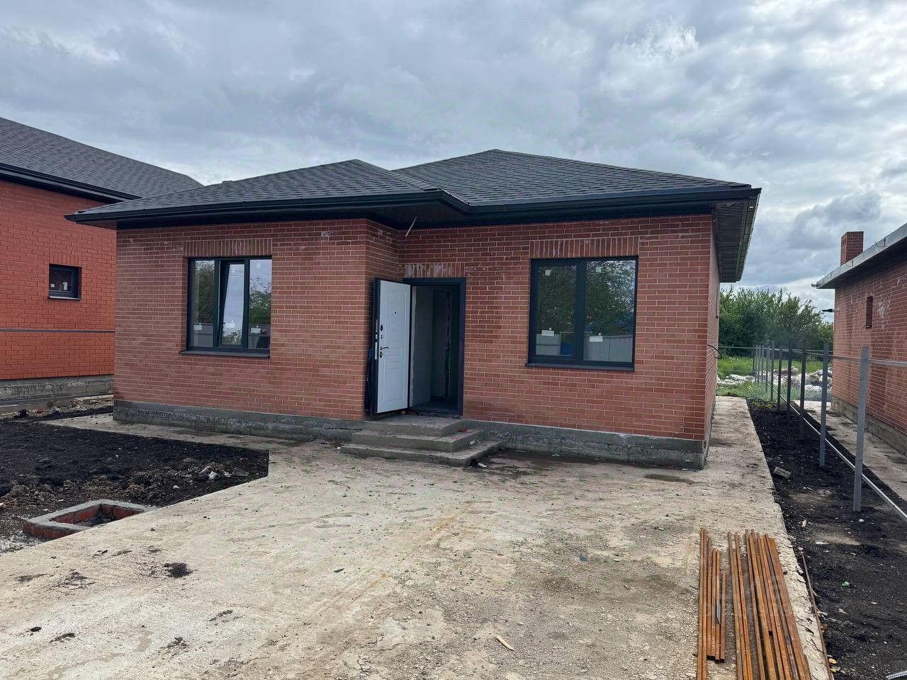 Дом построен из качественных материалов. Отделан керамическим кирпичом .Из коммуникаций в доме есть : свет 15 кв, газ проходит по меже , скважина.