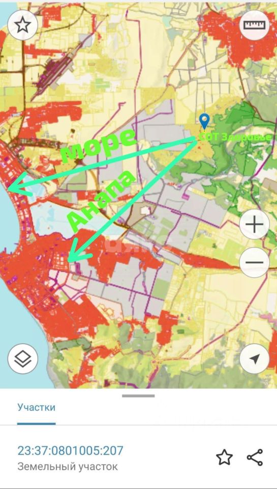 Участок с фасадом 20 метром у леса в СОТ Здоровье , ближайший пригород горда-курорта Анапа . Для ценителей спокойствия и тишины.
