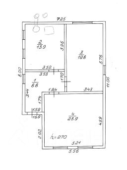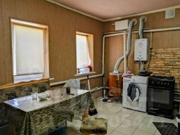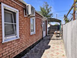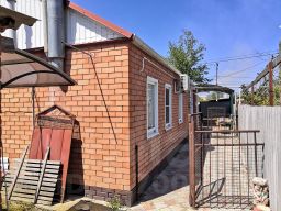 Станица Тбилисская. Жилой дом 2000 г. п. по ул. Элеваторной. Общая площадь 66,4 кв. м. Две изолированные комнаты (23,9+19,8), кухня - 13,9 кв. м., коридор - 8,8. МПО, металлическая водная дверь, установлена душевая кабина. Высота потолка 2,70. Газ, вода, котёл, все коммуникации. Туалет уличный. На участке есть баня, другие капитальные хозпостройки. Есть цветники и плодовые деревья. Двор - плитка, навес. Фасад 11 м. Земельный участок 700 кв. м., под ЛПХ