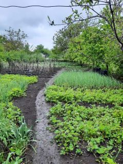 Участок обработан, с плодовыми деревьями и кустарниками.