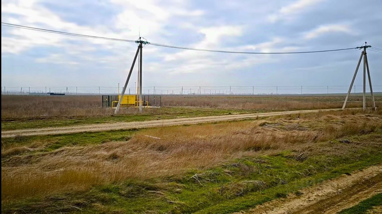 Участок из новой нарезки, в километре от посёлка. Электрические столбы стоят вдоль всей нарезки. Море в пятидесяти метрах.