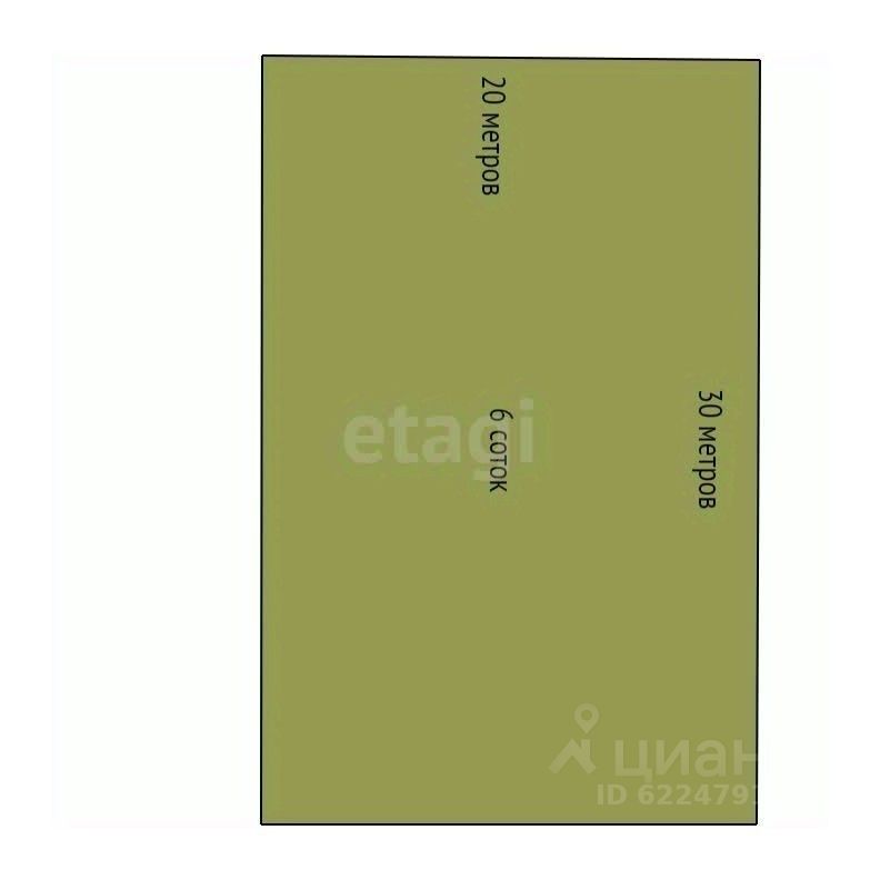 Площадь участка 6 соток. Фасад - 20 метров, глубина 30 метров. Из коммуникаций линия электроснабжения находится не далеко от участка, есть возможность подключиться к центральному водоснабжению. Участок не огорожен, до асфальтированной дороги 200 метров.
