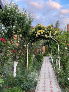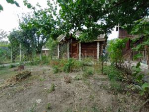 На участке расположена терраса, баня с сауной, санузел. Дополнительно есть парковочное место под автомобиль с навесом, вольер для собаки, высажены плодовые деревья и цветы.