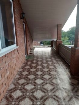 Двор ухоженный, выложен плиткой. На территории двора: баня с комнатой отдыха, гараж (полностью оборудован техникой для шиномонтажа), сарай, летний душ и туалет, большой погреб. Все постройки кирпичные, добротные.