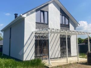 Общая площадь дома составляет 160 квадратных метров, а участок занимает более 3 соток. Участок имеет правильную форму и ровный рельеф. По периметру участка установлен забор, откатные ворота и калитка.