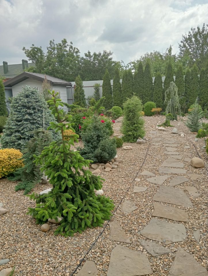 Благоустроенный участок: Участок 8 соток с ландшафтным дизайном, автоматической системой полива, зоной отдыха под навесом и зоной барбекю. Есть хоз. домик и навес для 2 автомобилей. Автоматические ворота.