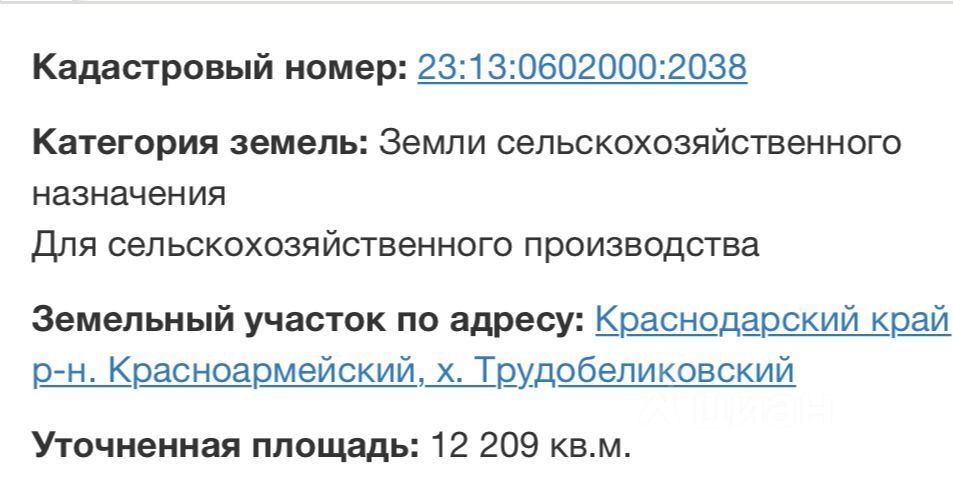 Кадастровый номер участка 23:13:0602000:*** указал продавец
