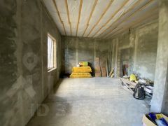 На первом этаже большая кухня 38 кв.м, гостиная, раздельный санузел.