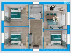 Планировка: В доме кухня-гостиная, три спальни, совместный санузел.