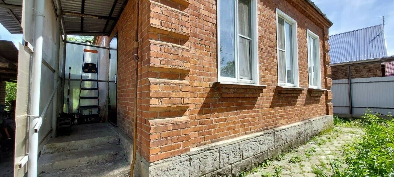 Продается кирпичный дом 60 м2 на участке 10 соток в станице Северская. Участок не подтопляется. Дом оборудован на 2 отдельных входа. В одной половине сделан косметический ремонт, установлены пластиковые окна. Сан. узел совместный, есть душевая кабинка, на полу плитка. Кухня- прихожая оборудована техникой, на полу выложена плитка. В комнате настелен ламинат. Вторая половина дома жилая, требует косметического ремонта. Потолки высокие- 3 метра. Участок ровный с плодовыми насаждениями- яблони, груши, черешня, персик, вишня- все, что необходимо для зимних закруток. Также на участке имеется хозяйственная постройка для хранения садового инвентаря и вольер для содержания домашней птицы. Есть газовая колонка на 2 контура- отопление и горячая вода. Водоснабжение- скважина. Есть септик. Все это делает минимальными коммунальные платежи.Центральная улица широкая и просторная. В шаговой доступности продуктовый магазин. Недалеко находится школа и стадион. До цента 20 минут пешком.