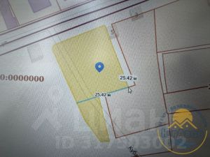 Фасад по главной улице - 25 метров,по боковой улице с одной 50м.