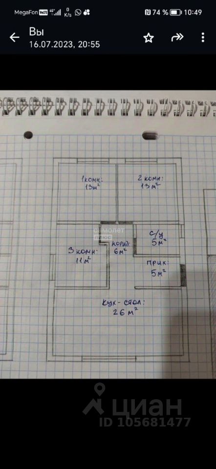 Дом 85 м2. 3 спальные комнаты 11+13+13, просторная кухня- гостиная 26 м2 с панорамным окном с выходом во двор, совмещенный сан.узел 5 м2, прихожая с выделенной зоной под вместительный шкаф-купе.