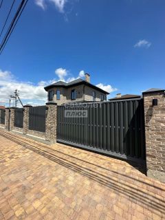 Откатные ворота на механизме. Стоит замечательная оконная система. Подсветка по забору.