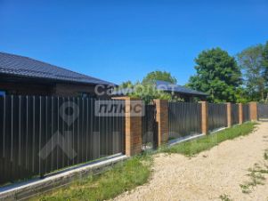 Дом располагается на прямоугольном участке правильной формы площадью 6 соток, участок по всему периметру огражден забором с красивыми воротами и калиткой.