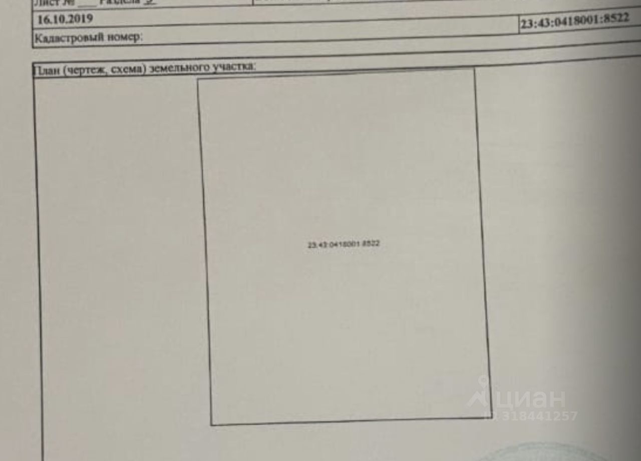 Кадастровый номер участка 23:43:0418001:*** указал продавец