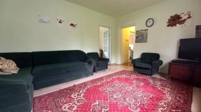 Дорога асфальтирована, рядом с домом автобусная остановка.