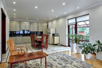 Во всём доме полы выполнены настоящим паркетом и плиткой. Кухонная мебель и техника совершенно новые.