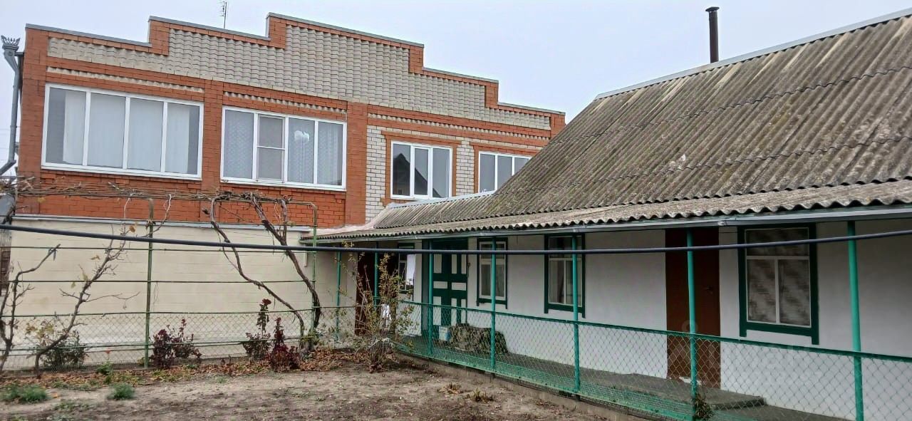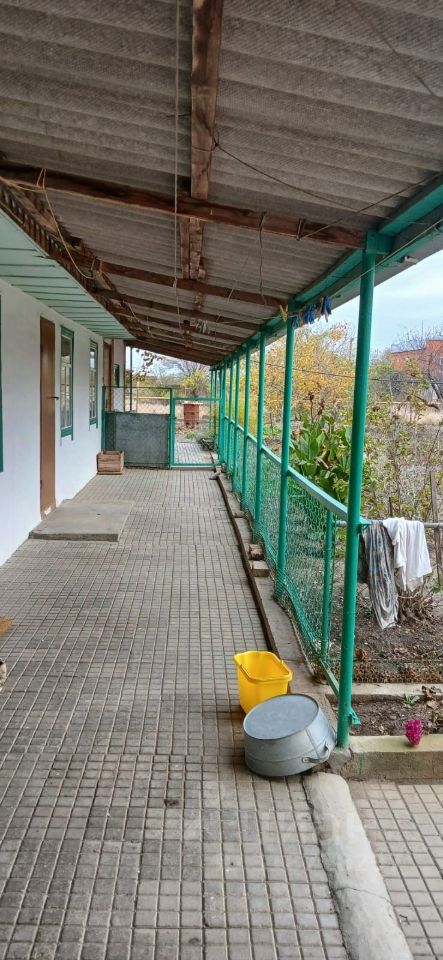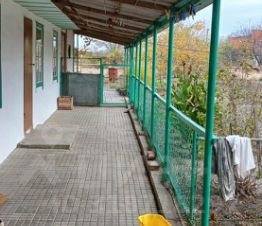 Дом находится в тихой, спокойной местности. Полностью жилой и благоустроен. Два этажа. Первый этаж - коридор, кухня - 17 м2, подсобные помещения, кладовая, пристыкован гараж - 36 м2(вместимость на две средние легковые машины). Пристройки: баня, летняя кухня под навесом - 25 м2, кладовая - 21,6м2, сарай - 29.4 м2. Отдельно навес - 43 м2. Отдельно летний и туалет из кирпича. Больная металлическая беседка-навес под виноград перед и рядом с домом. Вместимость на две большие машины. Также беседка перед гаражом. Виноград плодоносит на обеих беседках. Перед домом и гаражом металлические ворота и калитка. Забор сплошной металлический перед домом. По периметру огорода сетка Рабитца. Мощение по дворе - бетонная плитка. В огороде насосная колонка - металлическая труба. В огороде фруктовые деревья, кусты смородины, цветники.