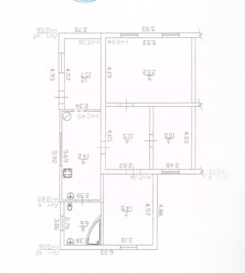 В доме четыре изолированные комнаты, кухня, санузел и межкомнатный коридор.
