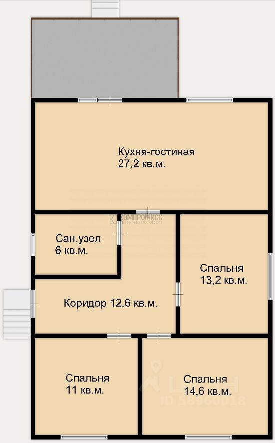 В доме 3 изолированные комнаты, кухня-гостиная, сан. узел, коридор.