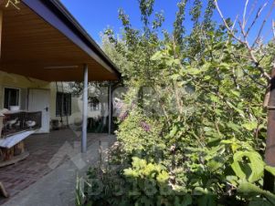 На участке сад ( растут плодово-ягодные деревья), два навеса, терраса, два гаража с отдельным въездами. Двор забетонирован. У дома три отдельных входа. Все окна в доме пластиковые. Фасад 18м, придомовая территория 14м.
