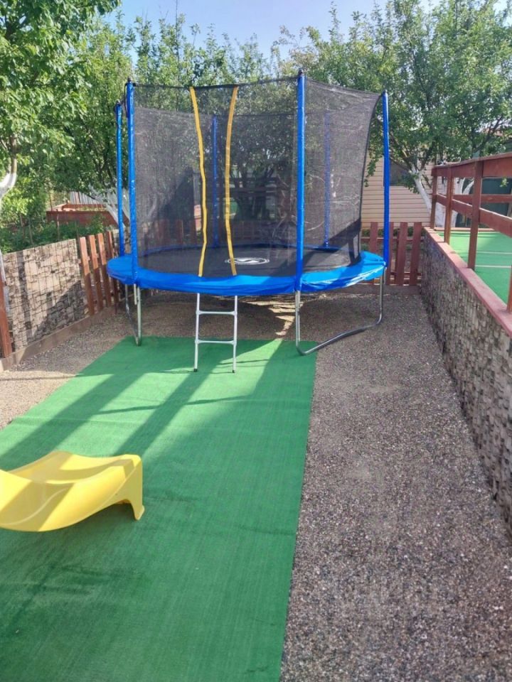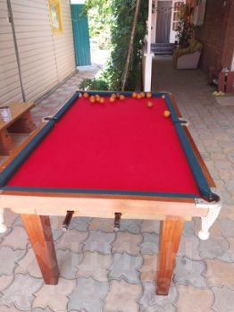 Этот добротный двухэтажный дом, построенный в 2009 году из чистого кирпича, поражает своими размерами и качеством. Ухоженный двор, выложенный плиткой, создает атмосферу уюта, а фруктовый сад, гараж, бильярдная, летняя кухня, баня, стационарный бассейн, детская площадка и зона барбекю делают его идеальным местом для отдыха и развлечений.