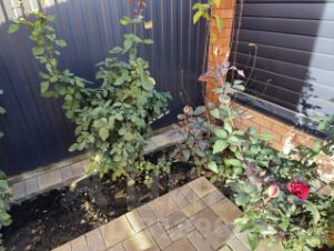 Участок озеленён: высажены туи, можжевельник, розы и газон.