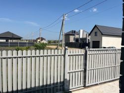 Дом сдан в эксплуатацию. Установлен забор, калитка и ворота.