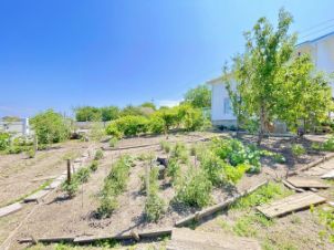 На одной половине участка — ухоженный сад с более чем 20 сортами винограда и плодовые деревья: гранат, черешня, яблони, груши, персики.