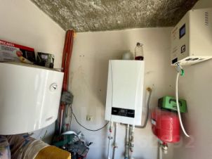 Газгольдер 2,2 куба (максимальная заправка до 1800 л) — под землей, с дополнительным газовым котлом для дома.