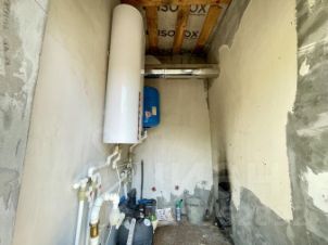 Первый этаж — просторный холл, большая комната с санузлом, котельная с бойлерной, фильтр для воды и бесперебойник "Ресанта".