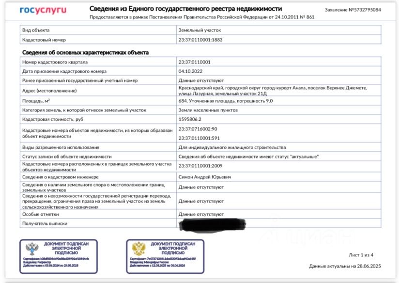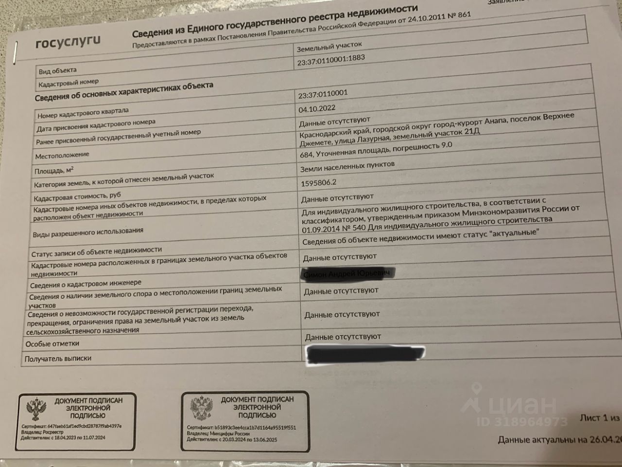 Я собственник.земля Ижс !!! не путать с лпх и снт , именно ИЖС (на фото есть ЕГРН) чуть выше Жд вокзала Анапы! Добраться на авто ,лучше через хутор Красный. Можете самостоятельно съездить посмотреть ! Коробка построена с учетом сейсмики данного региона , ( бетонный армокаркас ) ,если вам предлагают дома без армокаркаса -подумайте ! С участка открывается прекрасный вид на море !!! А так же горы и конечно же на Анапу ! До пляжа минут 20 пешком! Электричество подключено Россети ,15кв 3 фазы. Окна установлены сейчас б/у меньшего размера , оконные проемы на самом деле большие . Залит ленточный фундамент , глубина 80см (подошва под ленту утрамбована виброногой) , на ленту залита полноценная плита! Арматура везде 12мм. Бетон заказывал с завода Гостбетон . Разрешение на строительство получал официально в архитектурном. Дом введен в эксплуатацию и поставлен на кадастровый учет18.04.2025г. Выписка ЕГРН на дом получена . Вода центральная в поселке есть,стоимость подводки в районе 70 тысяч ( но так же можно вырыть колодец ! Так как на соседнем участке чуть ниже есть колодец старинный и в нем много воды . ) Вам не прийдется бурить скважину 200-300метров и платить бешеные деньги за это ! Участок самый верхний вас никогда ни прикаких обстоятельствах не подтопит!!! А так же вы не будете зажаты со всех сторон соседями ,участок крайний соседний участок только с одной стороны! Газ недавно протянули по улице , предлагали уже подводить к домам ! Перегородки еще не выкладывал так что есть возможность планировку сделать на ваше усмотрение . Участок в ипотеки от сбербанка , юридически проверен ! Можете привлечь любого юриста , нотариуса либо риелтора! Звоните , пишите .Кадастровый номер участка 23:37:0110001:1883