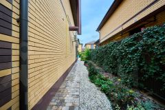 Ландшафтный дизайн с вечнозелеными растениями и системой автополива.
