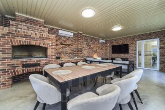 - 250 кв метров + 35 кв метров веранда с мангалом (с теплым полом, раздвижной витражной системой с двух сторон, выходом к бассейну)