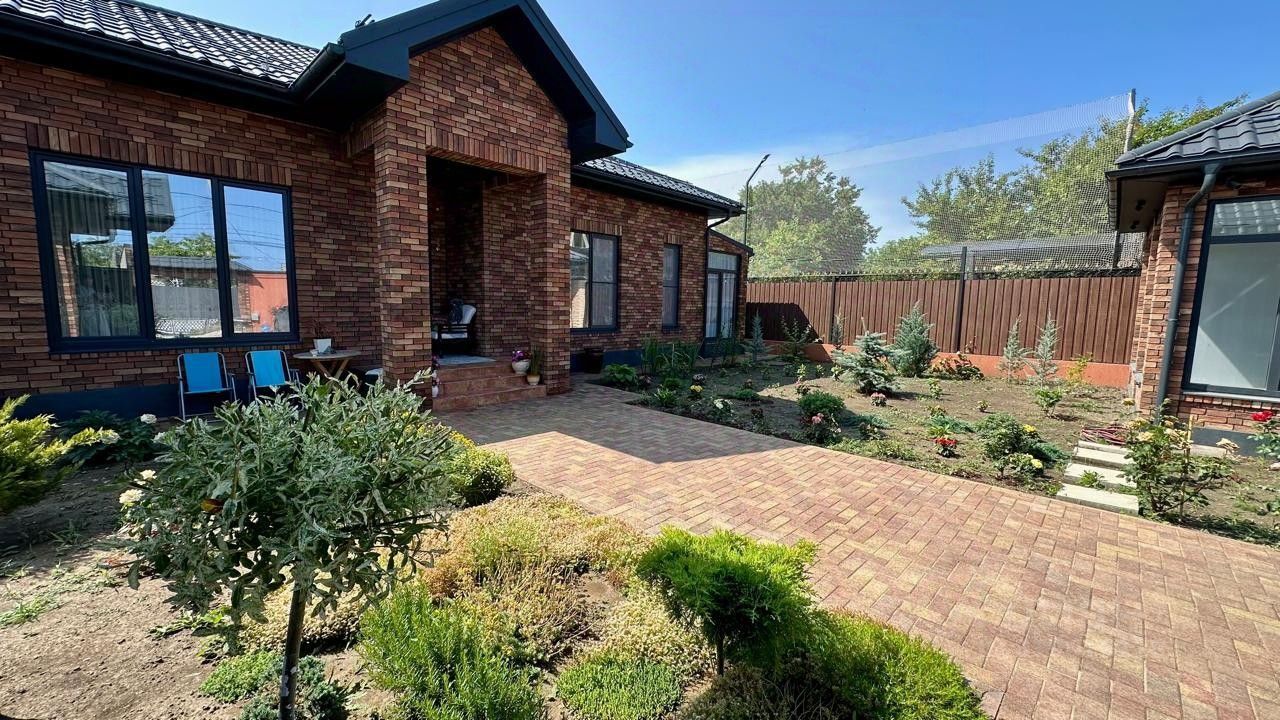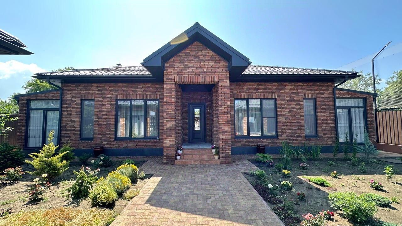 на участке 9 соток с привлекательным фасадом из кирпича ручной формочки благородного цвета, который выделяет эту недвижимость среди других.