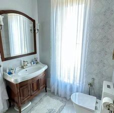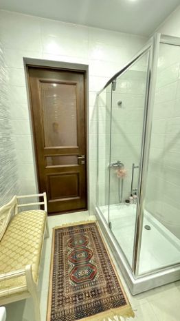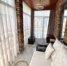 Интерьер полностью меблирован высококлассной мебелью, привезенной из Италии и Франции, а шторы выполнены из турецких тканей по индивидуальному заказу, что подчеркивает уникальность и элегантность дизайна интерьера.