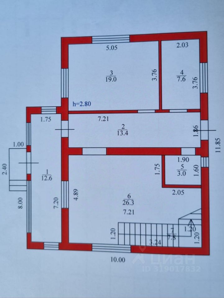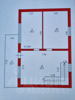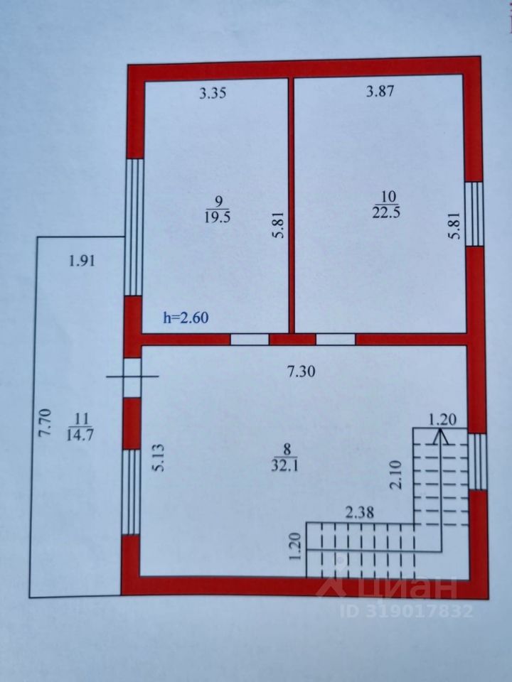 На втором этаже: две спальные комнаты, гостиная, балкон.