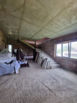 На первом этаже: большая кухня-гостиная, спальная комната, ванная, котельная, терраса.
