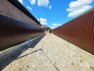 Участок 4 сотки, огражден по периметру участка забором из металлопрофиля, ворота откатные из металлоштакетника.