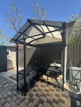 - мангальная зона сделана на заказ с гранитной столешницей;