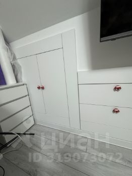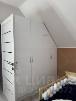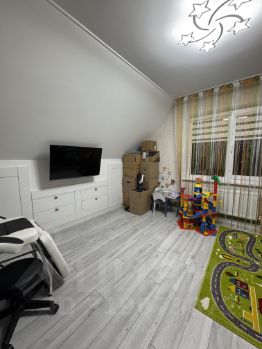 На втором этаже в детской встроены шкафы, два распашных с полочкой и 4 ящика, что очень удобно разложить все вещи и не занять место громоздким шкафом. На втором этаже находится второй дополнительный санузел. В спальне остается кровать, шкаф (делали на заказ), тумбочка и туалетный столик со стулом и гримерным зеркалом.