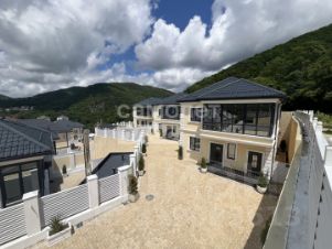 Из панорамных окон второго этажа открывается шикарный вид на горы, покрытые густым лиственным лесом. Этот пейзаж дает ощущение полного единения с природой, а горный воздух, пение птиц и шум леса создают неповторимую атмосферу.