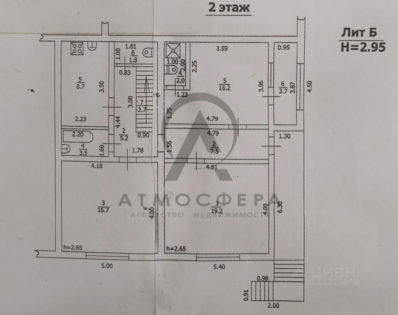 На втором этаже три спальные комнаты, одна из них с балконом и индивидуальным сан.узлом, кухня, раздельный сан.узел.