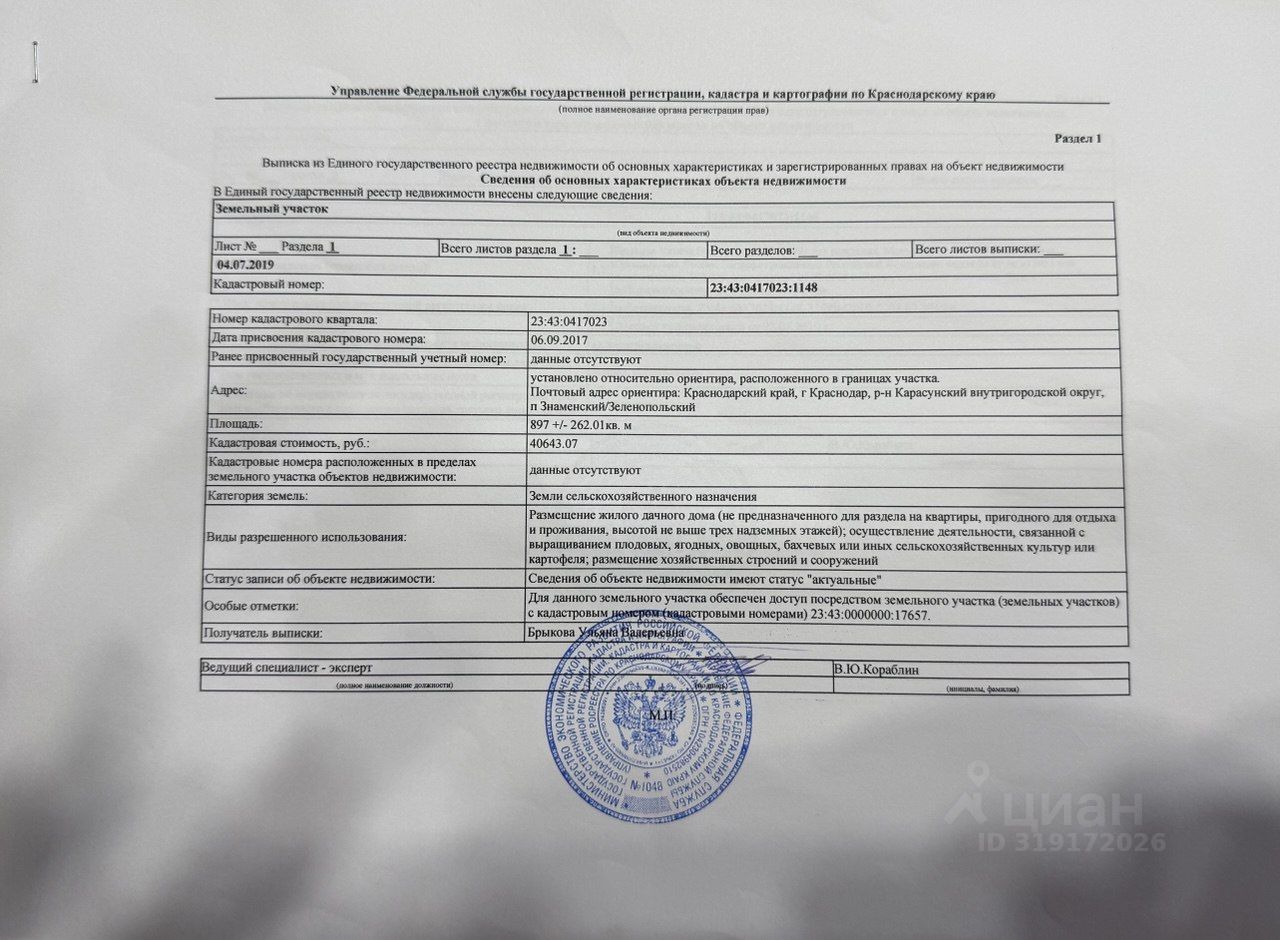 Адрес: Краснодарский край, г Краснодар, Карасунский внутригородской округ, п Знаменский/Зеленопольский. Кадастровый номер 23:43:0417023:1148