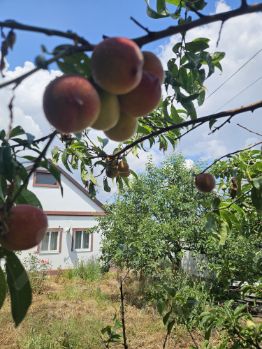 На участке растет плодоносящий фруктовый сад, который порадует вас своими дарами: груши, сливы, черешни, персики, яблони, абрикосы, инжир, виноград, смородина, клубника и т.д.